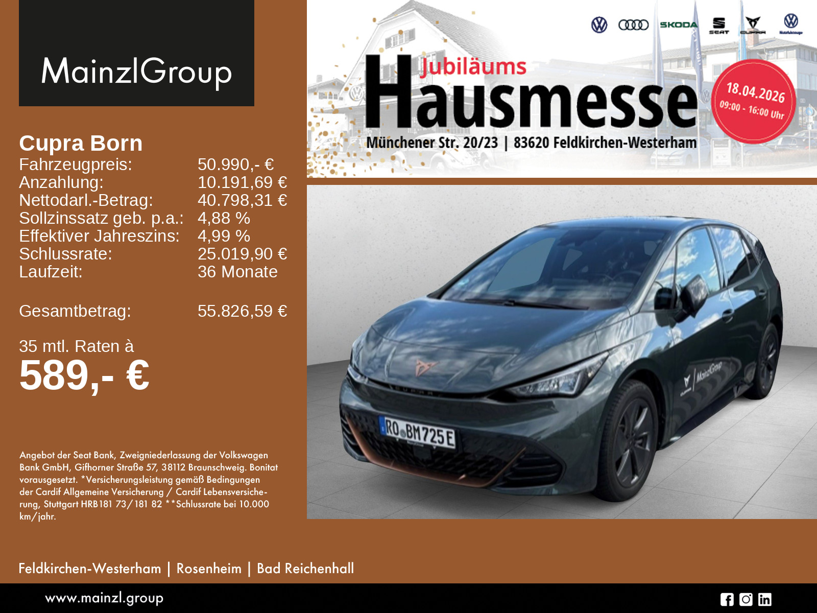 Garantie 60 Monate ab Tag der Erstzulassung, maximal 150.000 km, Winterräder ggf. gegen Aufpreis vorhanden, sprechen Sie unser Verkaufspersonal darauf an., Angaben zum Hersteller: SEAT Deutschland GmbH, Cupra, Max-Planck-Str. 3-5, 64331 Weiterstadt, 06150-1079991, service(at)cupraofficial.de