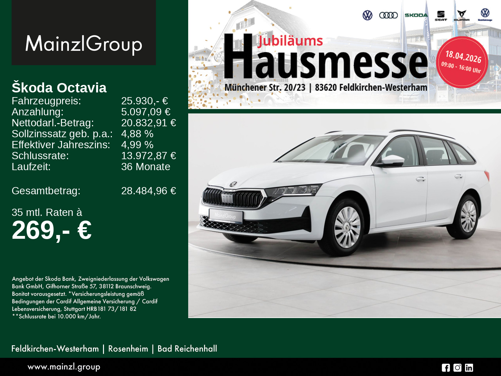 Garantie 24 Monate ab Tag der Erstzulassung, Winterräder ggf. gegen Aufpreis vorhanden, sprechen Sie unser Verkaufspersonal darauf an., Angaben zum Hersteller: Skoda Auto Deutschland GmbH, Skoda, Max-Planck-Str. 3-5, 64331 Weiterstadt, 06150/133-0, info(at)skoda-auto.de