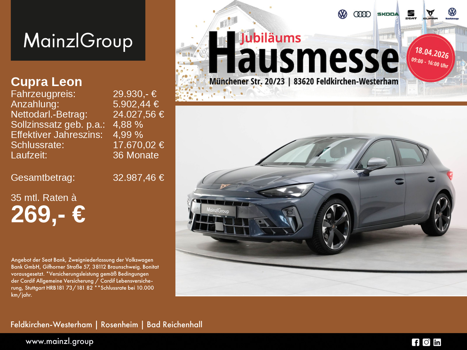 Garantie 60 Monate ab Tag der Erstzulassung, maximal 150.000 km, Winterräder ggf. gegen Aufpreis vorhanden, sprechen Sie unser Verkaufspersonal darauf an., Angaben zum Hersteller: SEAT Deutschland GmbH, Cupra, Max-Planck-Str. 3-5, 64331 Weiterstadt, 06150-1079991, service(at)cupraofficial.de