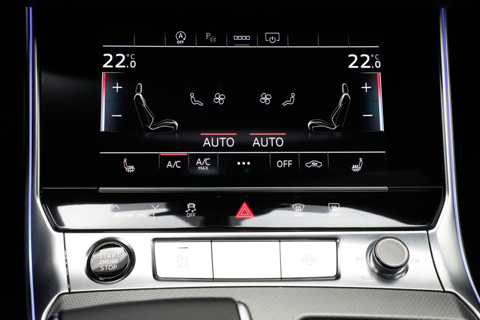 * Bedientasten schwarz glänzend mit haptischem Feedback und Aluminiumoptik Interieur