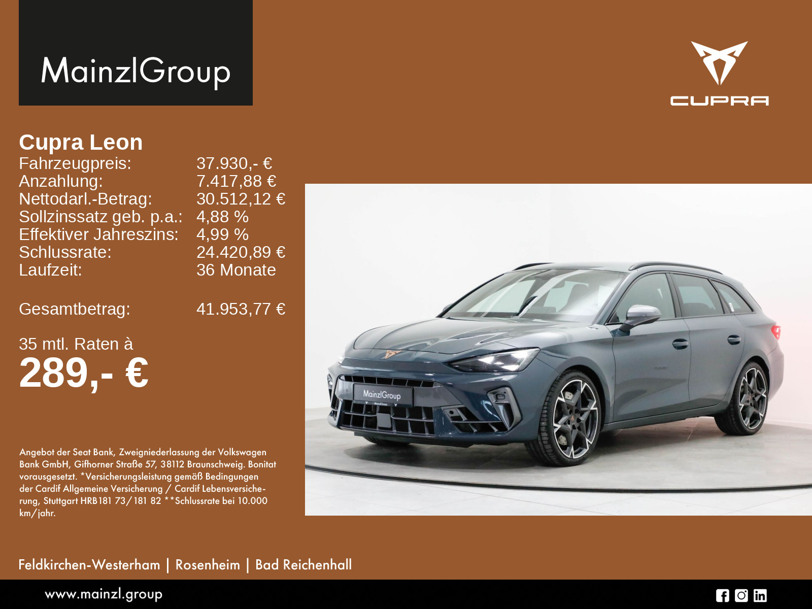 Garantie 60 Monate ab Tag der Erstzulassung, maximal 150.000 km, Winterräder ggf. gegen Aufpreis vorhanden, sprechen Sie unser Verkaufspersonal darauf an., Angaben zum Hersteller: SEAT Deutschland GmbH, Cupra, Max-Planck-Str. 3-5, 64331 Weiterstadt, 06150-1079991, service(at)cupraofficial.de