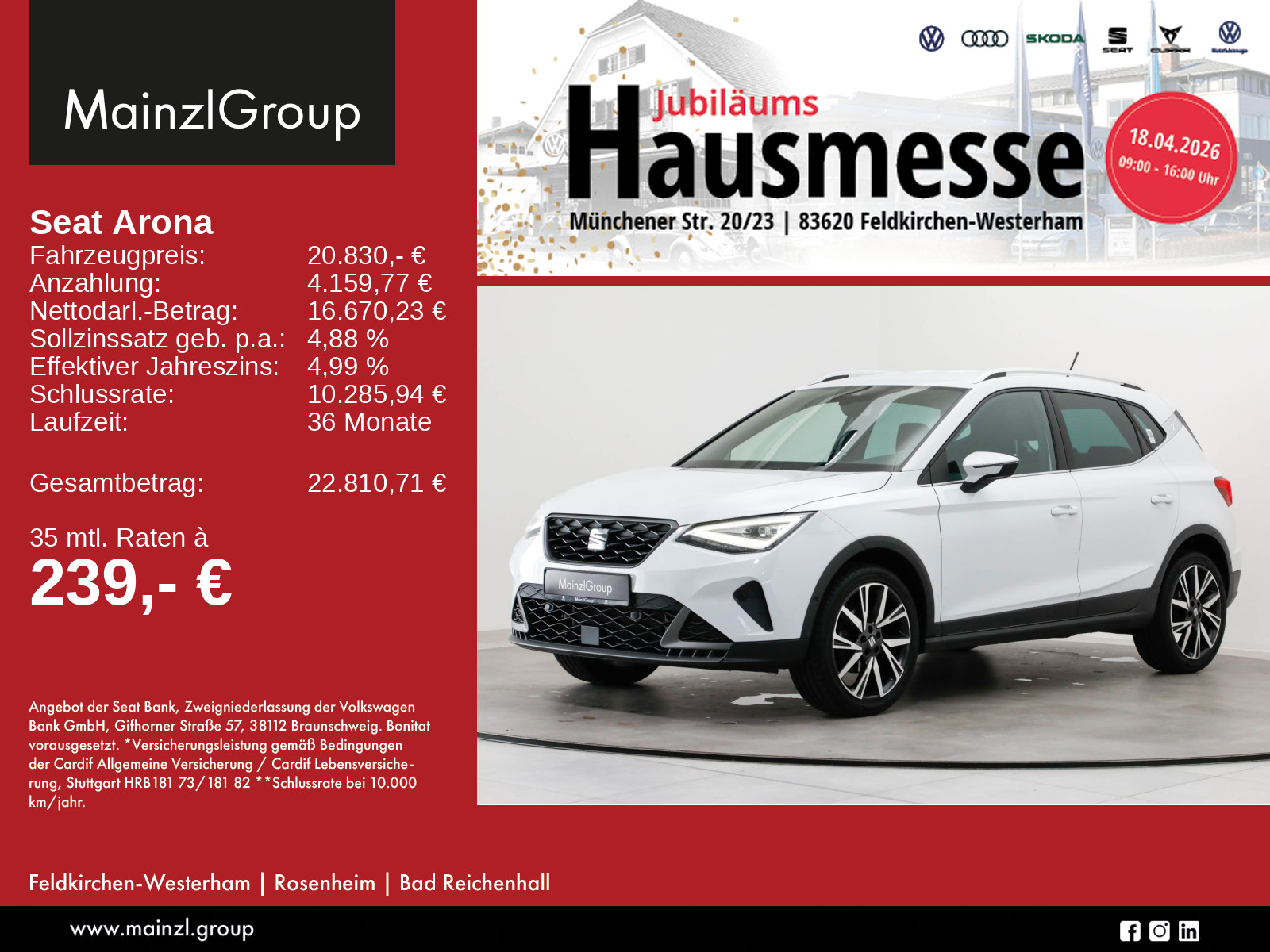 Winterräder ggf. gegen Aufpreis vorhanden, sprechen Sie unser Verkaufspersonal darauf an., Angaben zum Hersteller: SEAT Deutschland GmbH, Seat, Max-Planck-Str. 3-5, 64331 Weiterstadt, 06150-1855-0, service(at)seat.de