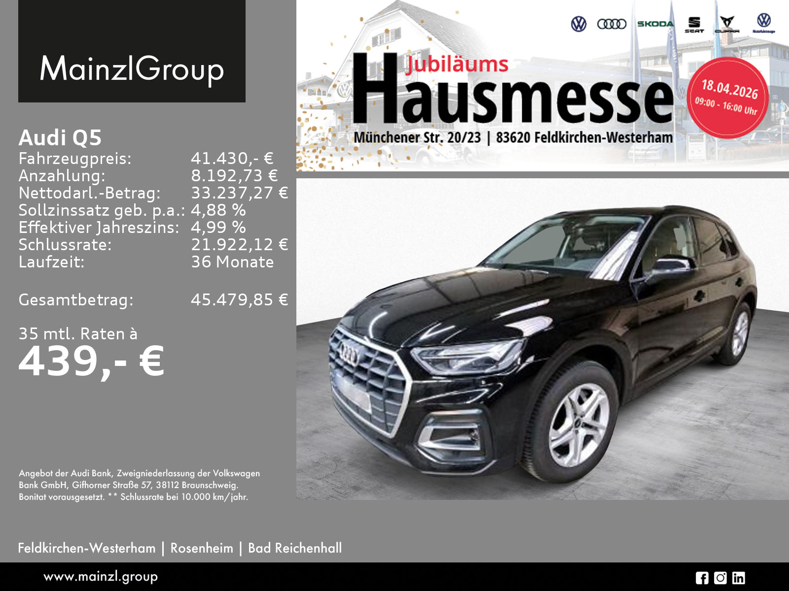 Audi Connect je nach Dienst zeitlich begrenzt, danach kostenpflichtig verlängerbar, Winterräder ggf. gegen Aufpreis vorhanden, sprechen Sie unser Verkaufspersonal darauf an., Angaben zum Hersteller: AUDI AG, Audi, Auto-Union-Straße 1, 85057 Ingolstadt, Deutschland, +49-841-89-0, kundenbetreuung(at)audi.de, Produktinformationen: https://www.audi.de/de/rechtliches/gpsr/