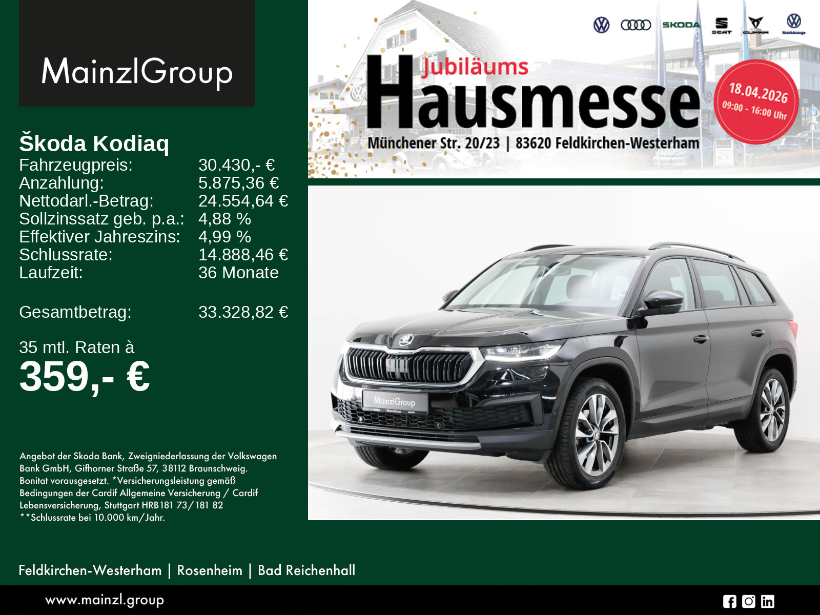 Winterräder ggf. gegen Aufpreis vorhanden, sprechen Sie unser Verkaufspersonal darauf an., Angaben zum Hersteller: Skoda Auto Deutschland GmbH, Skoda, Max-Planck-Str. 3-5, 64331 Weiterstadt, 06150/133-0, info(at)skoda-auto.de