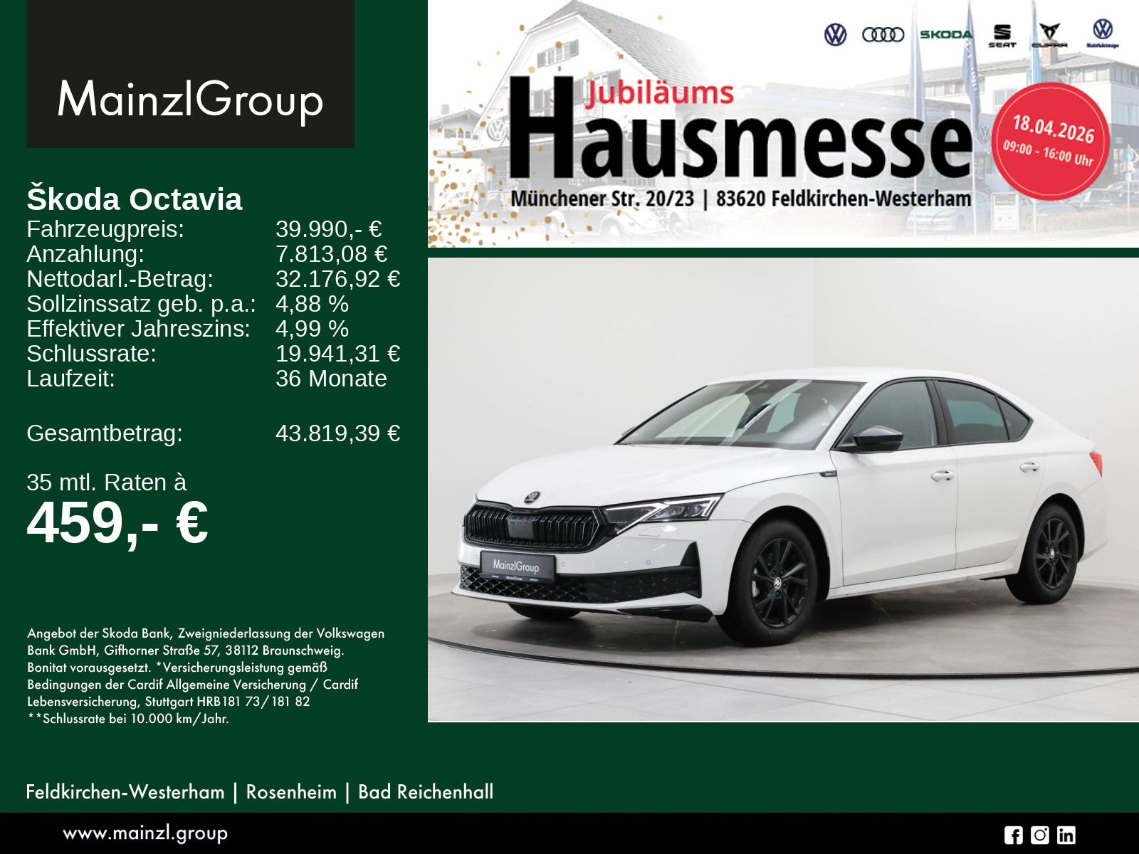 Garantie 24 Monate ab Tag der Erstzulassung, Winterräder ggf. gegen Aufpreis vorhanden, sprechen Sie unser Verkaufspersonal darauf an., Angaben zum Hersteller: Skoda Auto Deutschland GmbH, Skoda, Max-Planck-Str. 3-5, 64331 Weiterstadt, 06150/133-0, info(at)skoda-auto.de