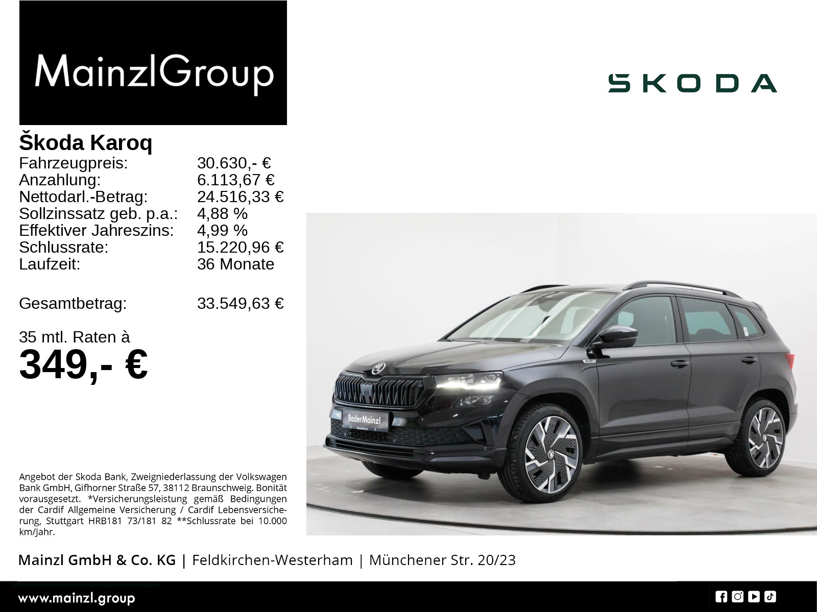 Winterräder ggf. gegen Aufpreis vorhanden, sprechen Sie unser Verkaufspersonal darauf an., Angaben zum Hersteller: Skoda Auto Deutschland GmbH, Skoda, Max-Planck-Str. 3-5, 64331 Weiterstadt, 06150/133-0, info(at)skoda-auto.de